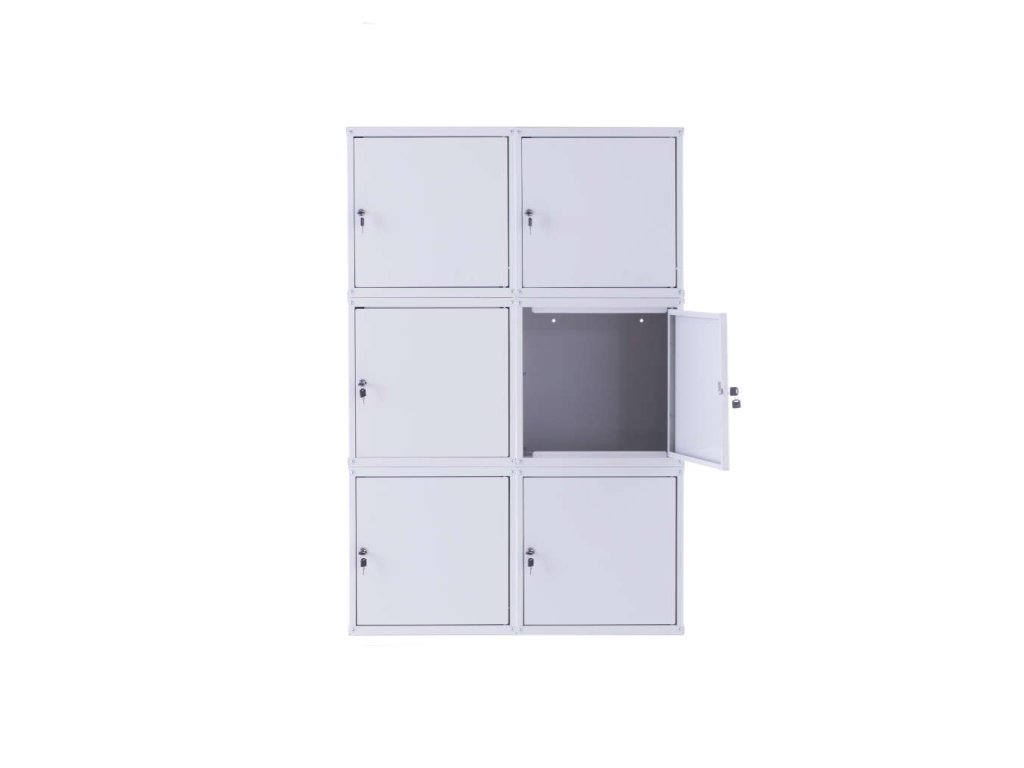 AKCE Balíček 6x uzamykatelná kovová skříňka Tresltes SKM 450x450x450, světle šedá