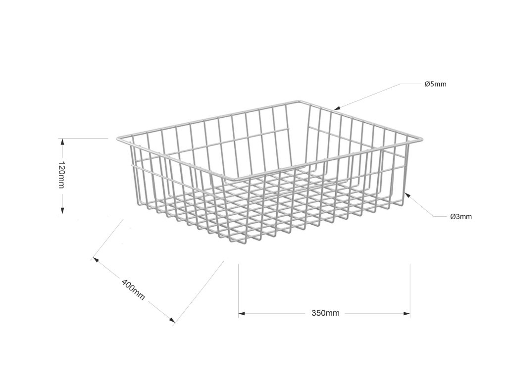 Drátěný koš KS28 pro regál s hloubkou 400mm, 350(h)x400(š)x120(v) mm
