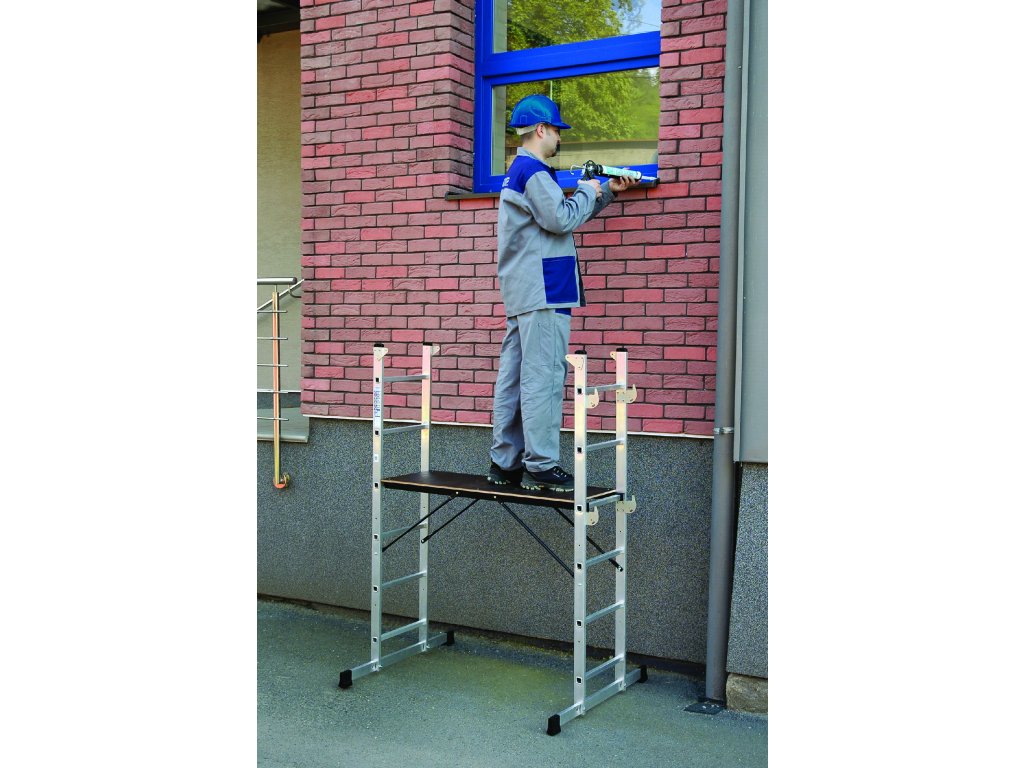 Ergonomický design a stabilní podpěra přidávají na bezpečnosti a pohodlí při práci na vyšších místech, což je ideální pro domácí údržbu, drobné opravy nebo jiné situace, kdy je potřeba dosáhnout na nedosažitelná místa.