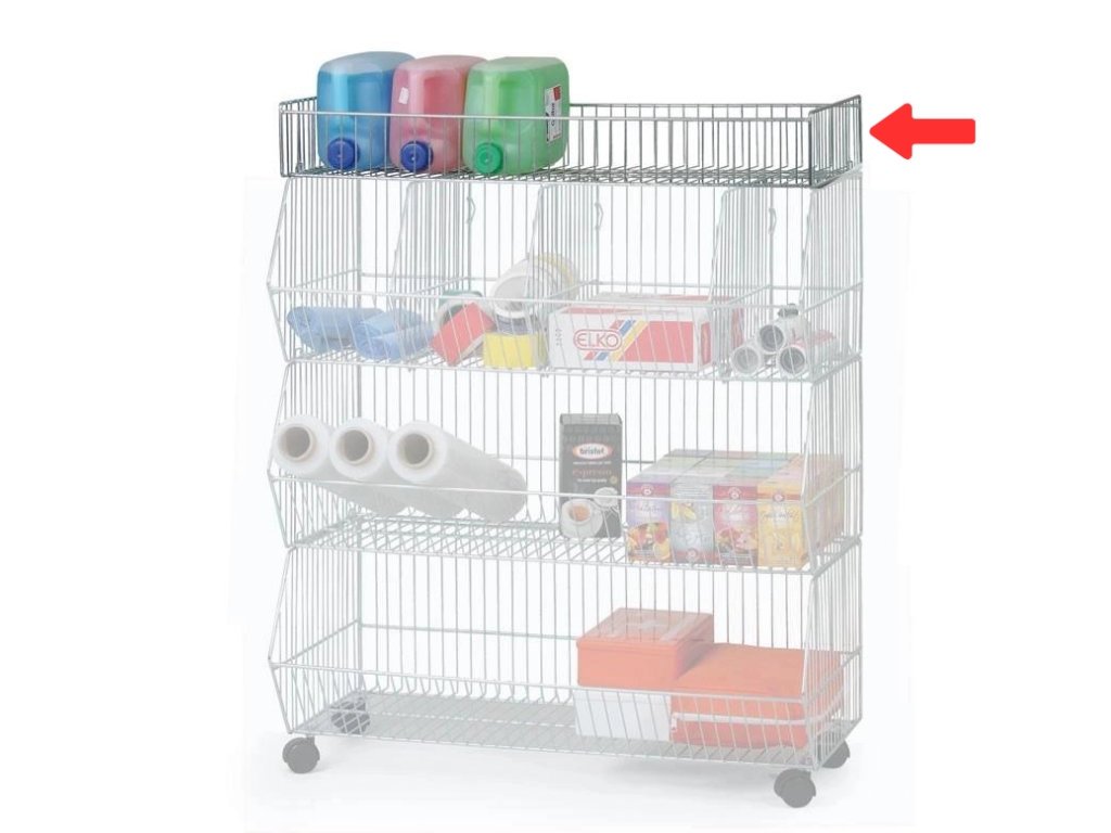 Horní drátěná police je praktické rozšíření stohovacích košů, sestavu uzavře a vytvoří další bezpečný úložný prostor.