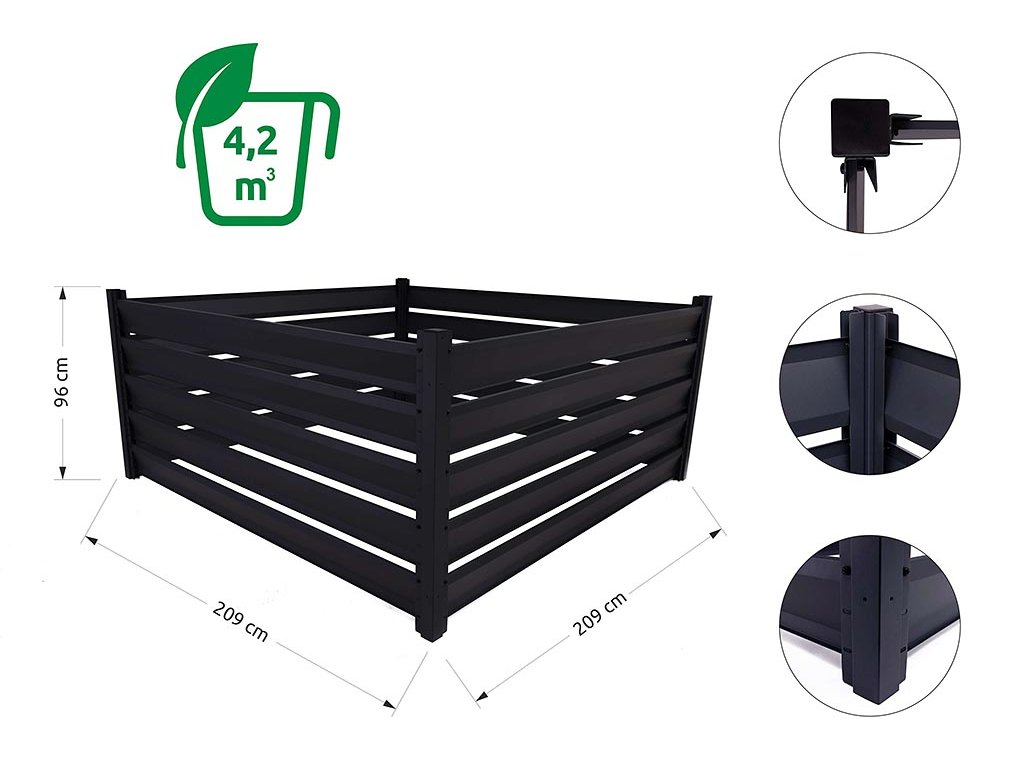 Kompostér Trestles KOMP2 2100x2100x1000 mm, 4200 l, černý