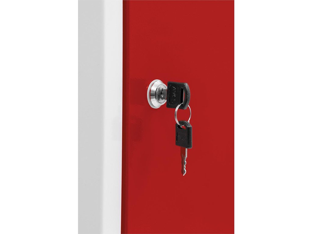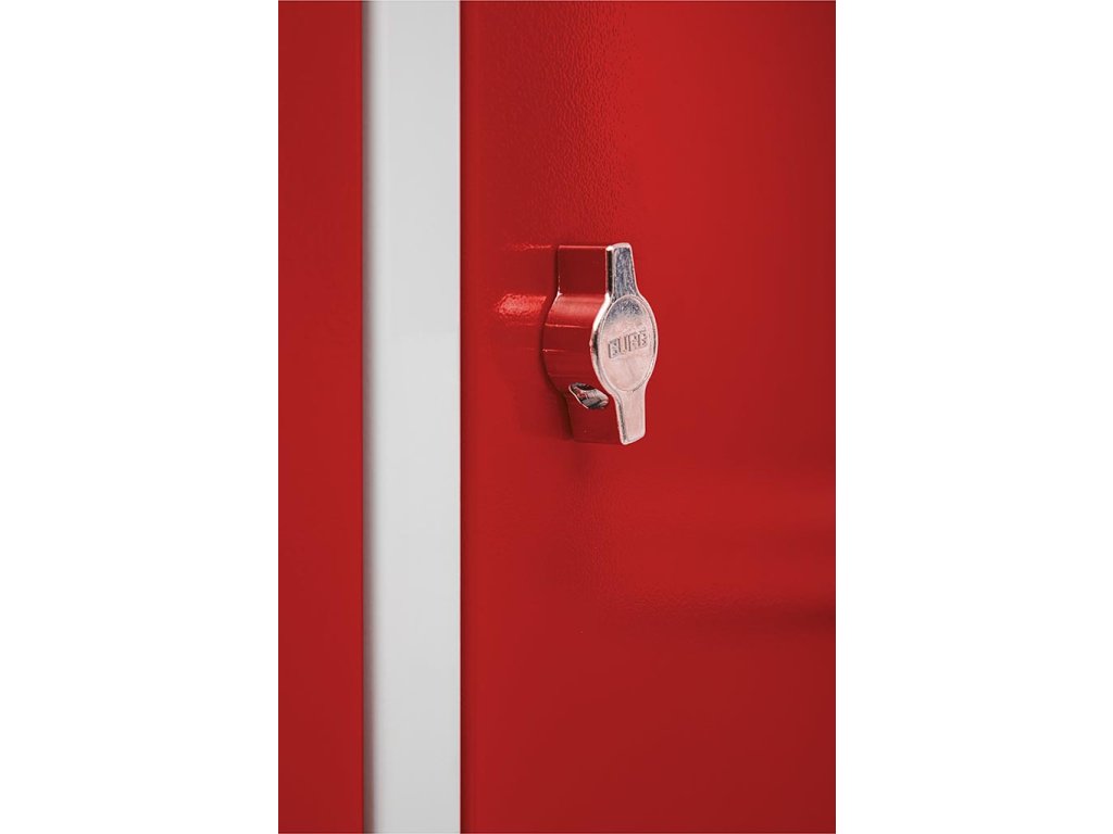 ✔︎ Barva korpusu světle šedá RAL7035 a barva dveří červená RAL3000 – světle šedý korpus a výrazné červené dveře.