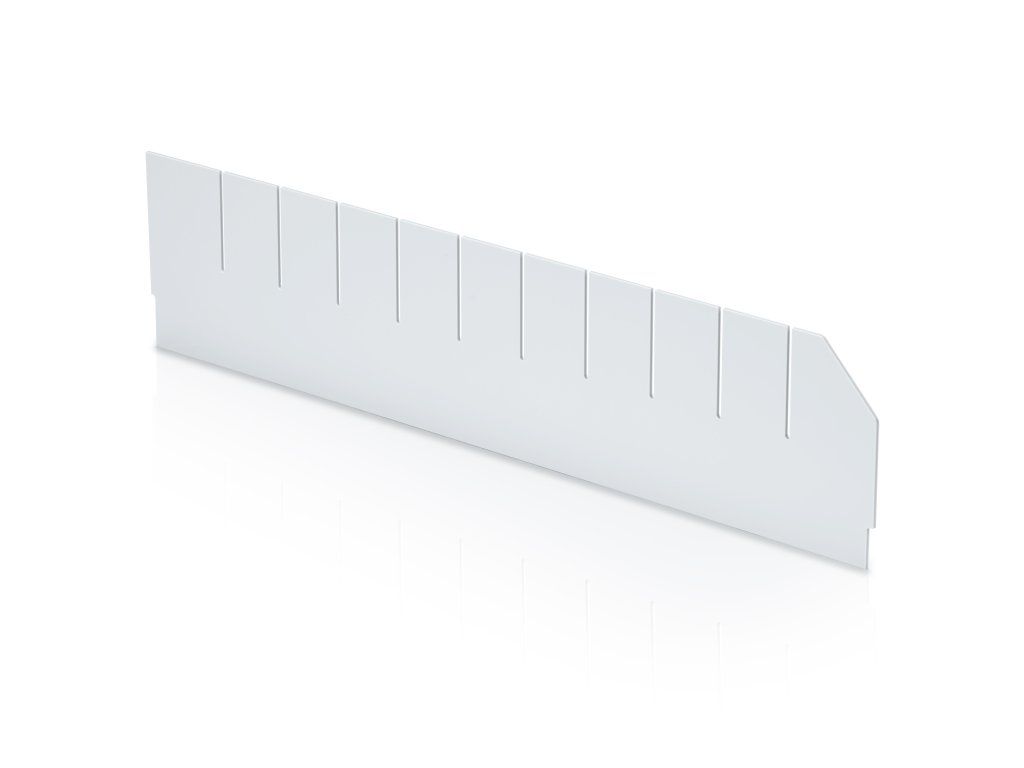 Tato varianta podélné příčky je navržena s výřezy, které umožňují kombinovat další příčné předěly a vytvořit tak jemnější a flexibilnější členění v regálovém boxu. Díky přesnému uchycení do vodicích drážek zůstává stabilně na svém místě. Ideální řešení pro detailní třídění menších komponentů a součástek. Vhodné pro 964430.Doplňkové parametry