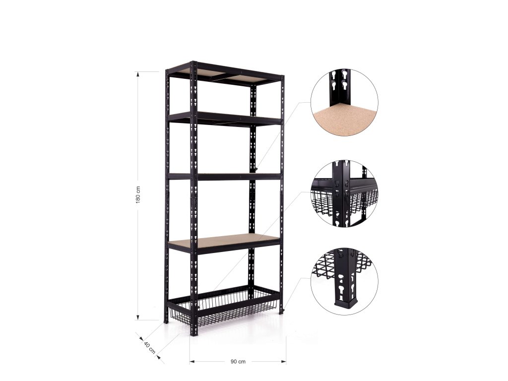 Hlavní výhody regálu s 1 drátěným košem a 4 policemi:
