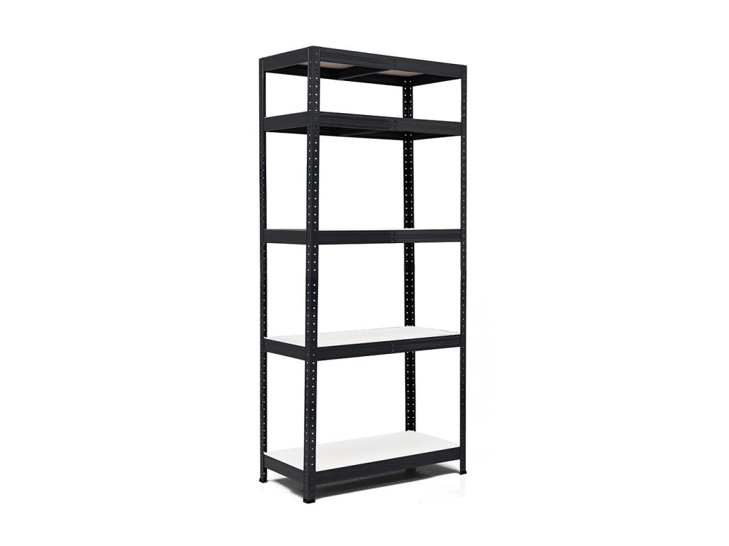 Každá z jeho 5 polic unese až 350 kg, což znamená celkovou nosnost až 1750 kg. Používáme kvalitní 5 mm MDF desky s bílým laminem na horní straně.