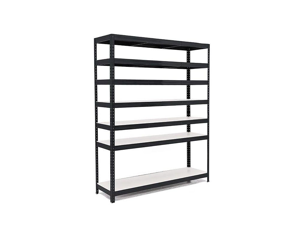 Každá z jeho 7 polic unese až 250 kg, což znamená celkovou nosnost až 1750 kg. Používáme kvalitní 5 mm MDF desky s bílým laminem na horní straně.