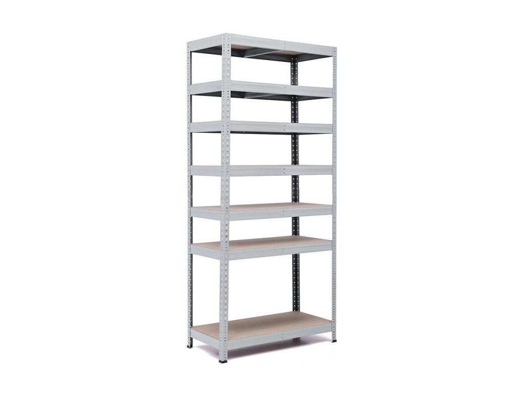 Každá z jeho 7 polic unese až 250 kg, což znamená celkovou nosnost až 1750 kg. Na rozdíl od běžných regálů používáme 8 mm DTD desky, které jsou pevnější než běžně používané MDF či HDF police.