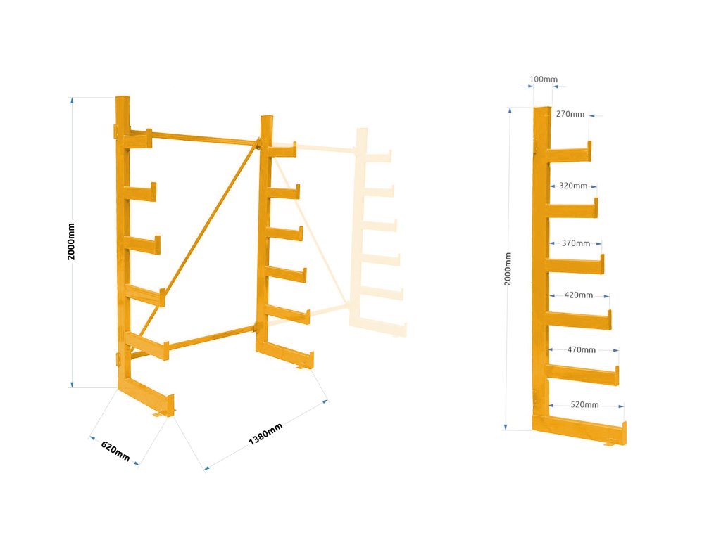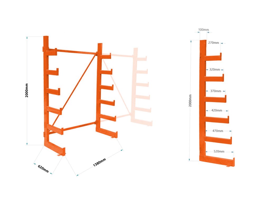 Poloviční stromečkový jednostranný konzolový regál 2000x1380x620 kg, nosnost 2400 kg