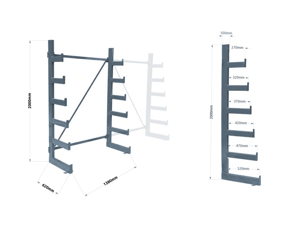 Poloviční stromečkový jednostranný konzolový regál Trestles RK 2000x1380x620, nosnost 2400 kg