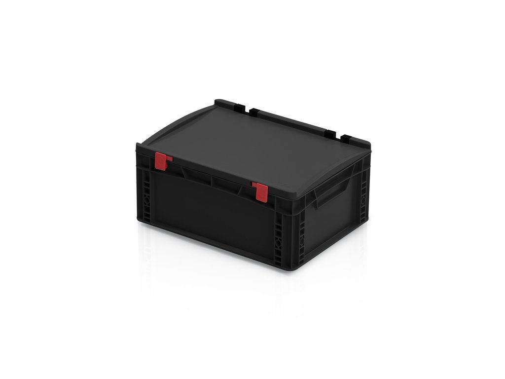 ESD Euro přepravky s víkem jsou vyrobené z kvalitního a vodivého polypropylenu černé barvy. Určené pro přepravu a skladování citlivých elektro součástek. Zamezují vzniku elektrostatického náboje. Vždy bezpečná manipulace s elektro komponenty s boxy od TBA. Možnost potisku.Doplňkové parametry