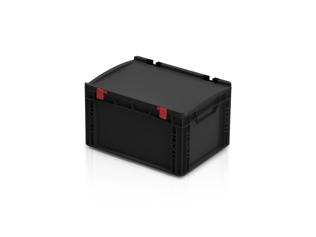 ESD Euro přepravky s víkem jsou vyrobené z kvalitního a vodivého polypropylenu černé barvy. Určené pro přepravu a skladování citlivých elektro součástek. Zamezují vzniku elektrostatického náboje. Vždy bezpečná manipulace s elektro komponenty s boxy od TBA. Možnost potisku.Doplňkové parametry