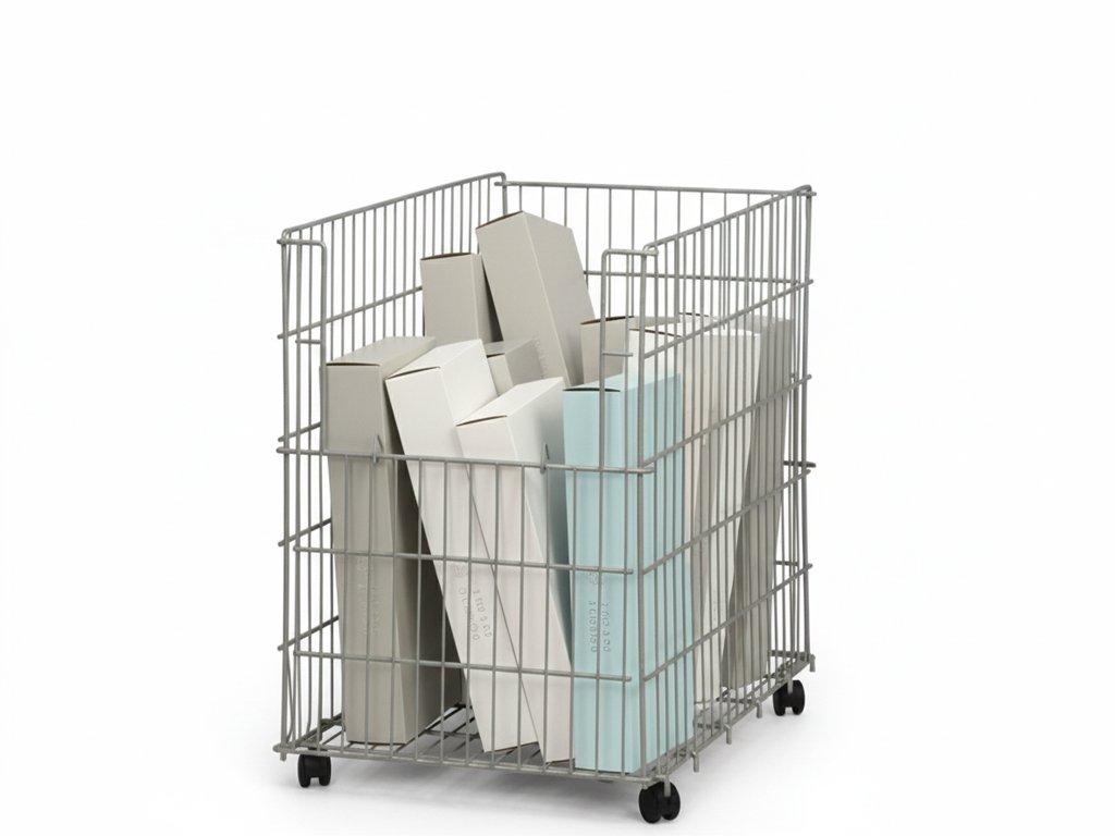 Prodejní úložný koš na kolečkách se snímatelnými dvířky je ideální do akčních zón, kde se zboží často doplňuje a výběr je pohodlný.