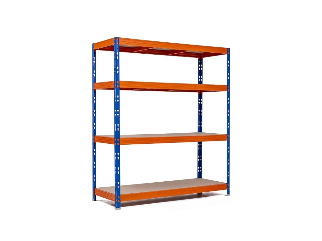 Profesionální policový regál Trestles RR1 1800x1800x600, nosnost 2000 kg, 4 police, oranžovo-modrý