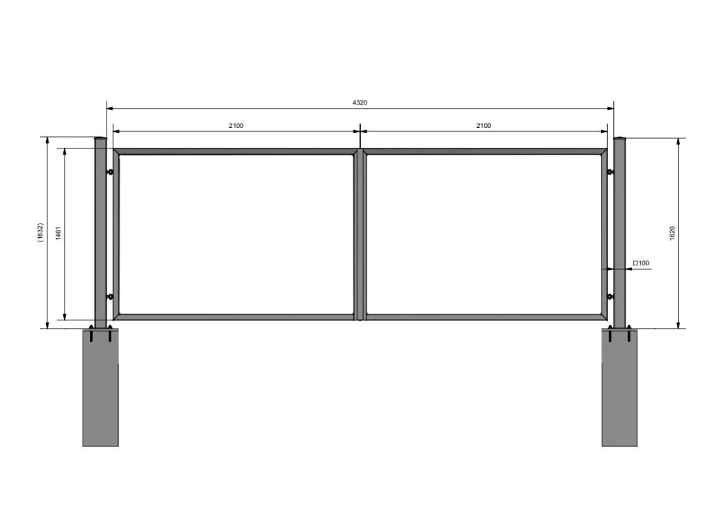 Rám brány dvoukřídlé pro vlastní výplň, délka 4208 mm, výška 1461 mm