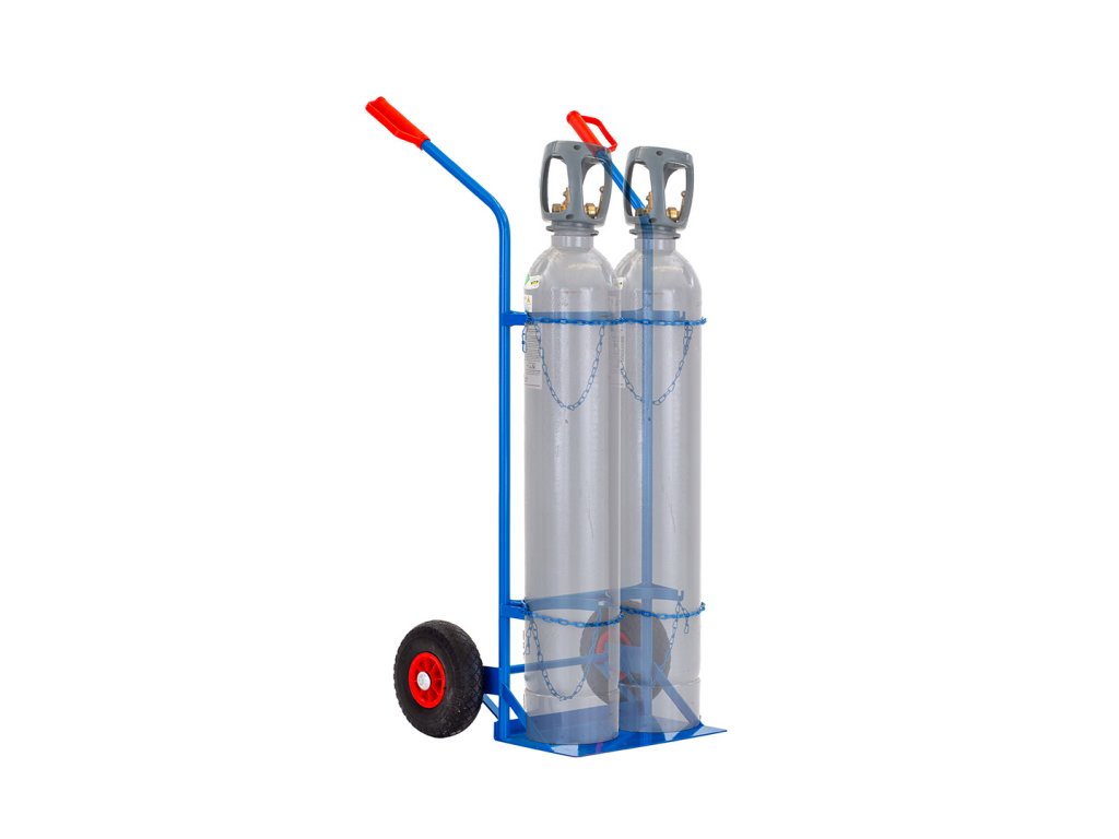 Rudl na dvě plynové láhve s řetízky k zajištění láhví