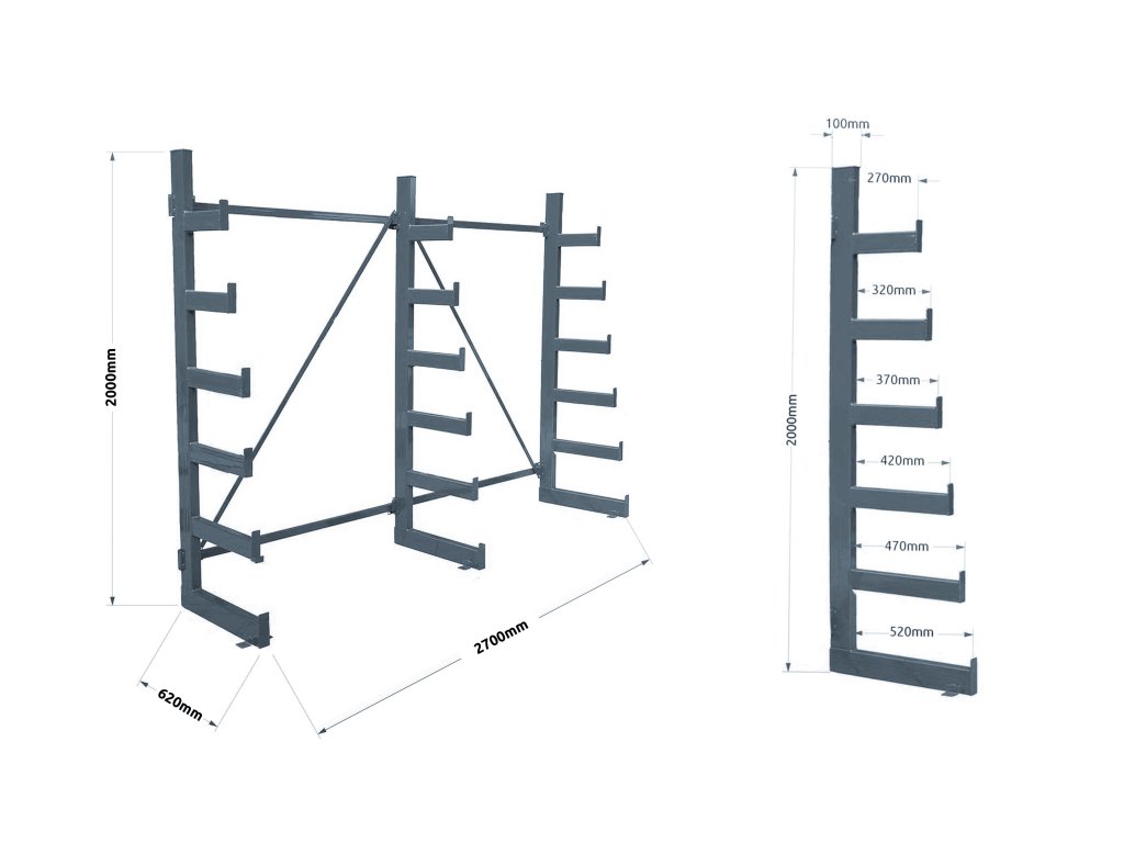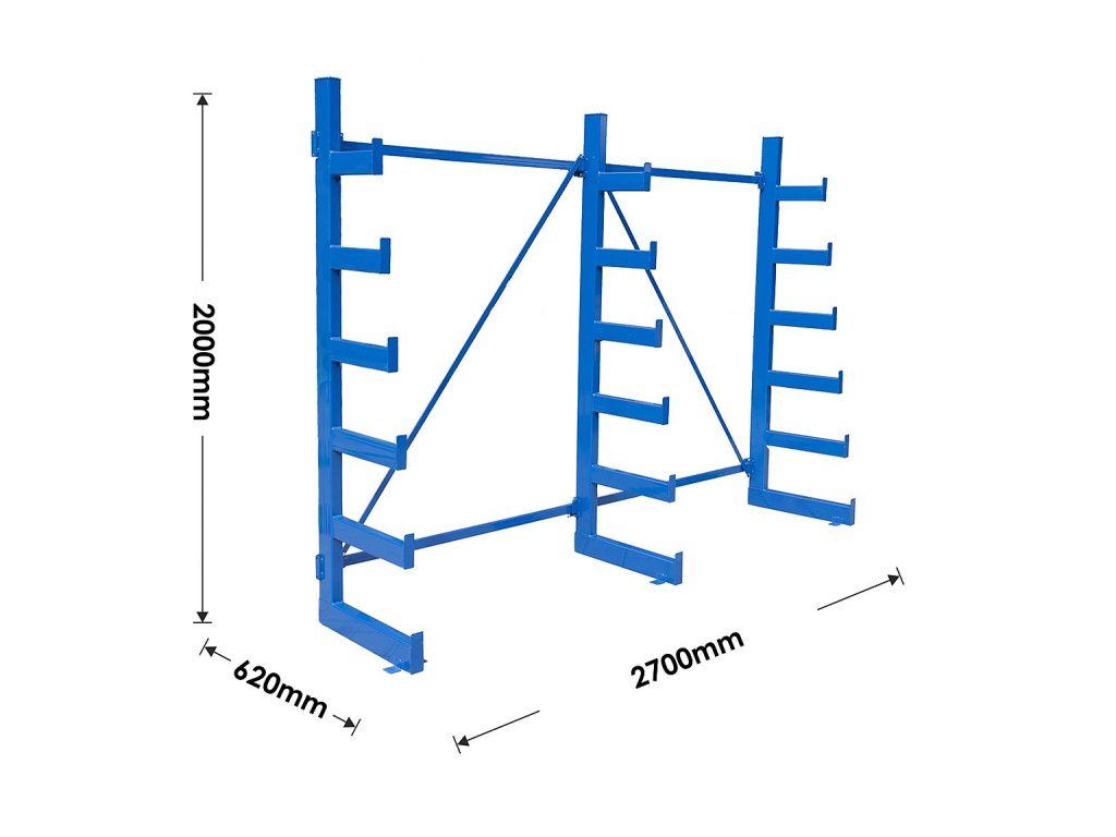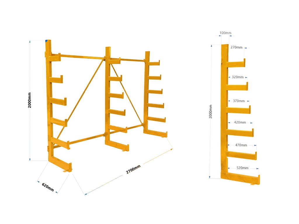 Stromečkový jednostranný konzolový regál Trestles RK 2000x2700x620, nosnost 3600 kg