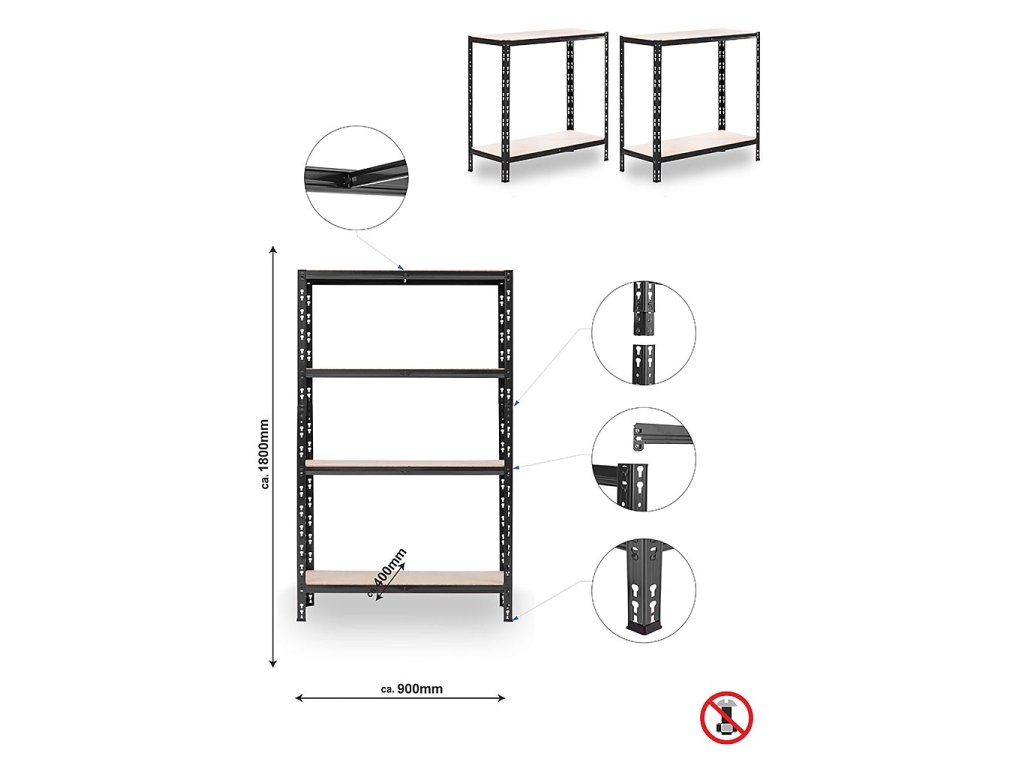 SUPER HIT - Policový regál Trestles RNDU-KUI 1800x900x400, nosnost 700 kg, 4 police, černý