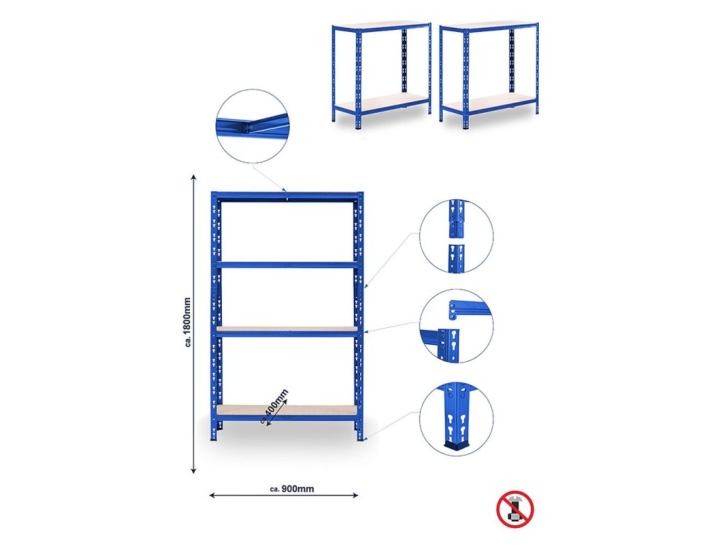 SUPER HIT - Policový regál Trestles RNDU-KUI 1800x900x400, nosnost 700 kg, 4 police, modrý