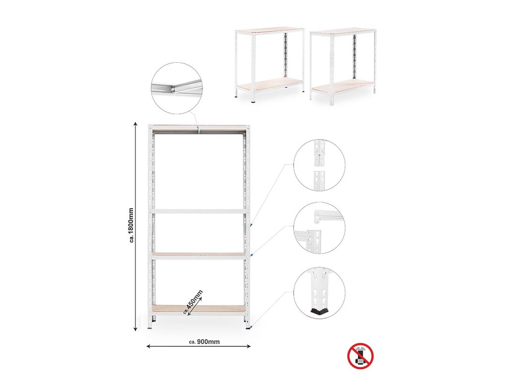 ✅ Antiskluzové patky – ochrana podlahy a větší stabilita regálu.