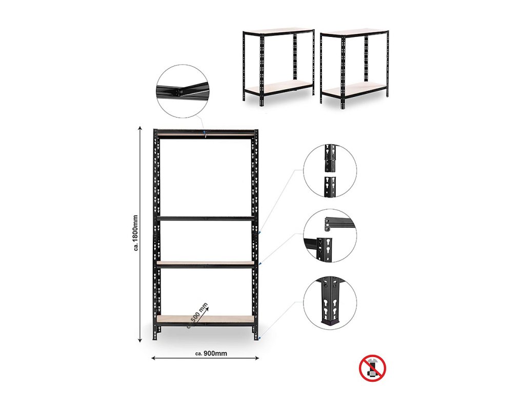 SUPER HIT - Policový regál Trestles RNDU-KUI 1800x900x500, nosnost 700 kg, 4 police, černý
