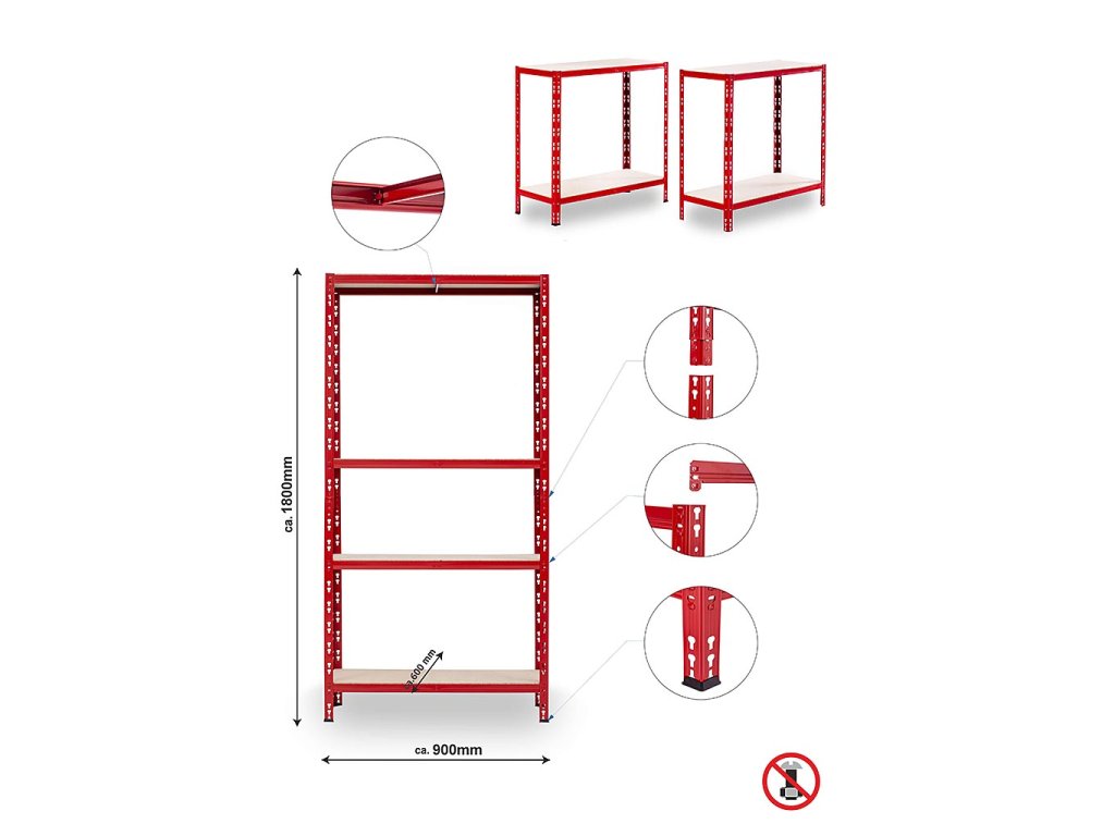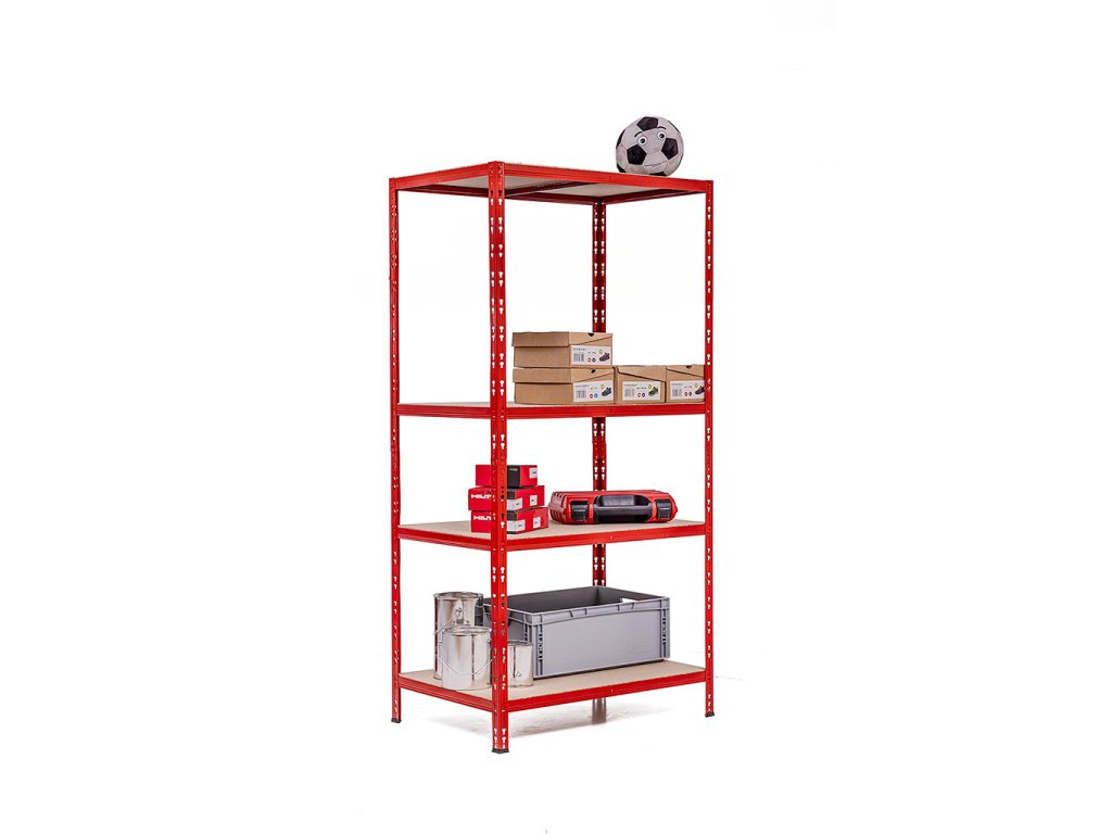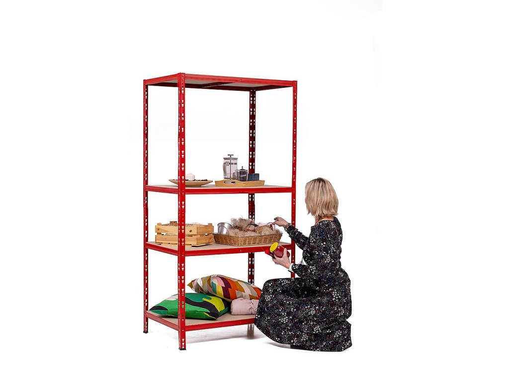 SUPER HIT - Policový regál Trestles RNDU-KUI 1800x900x600, nosnost 700 kg, 4 police, červený
