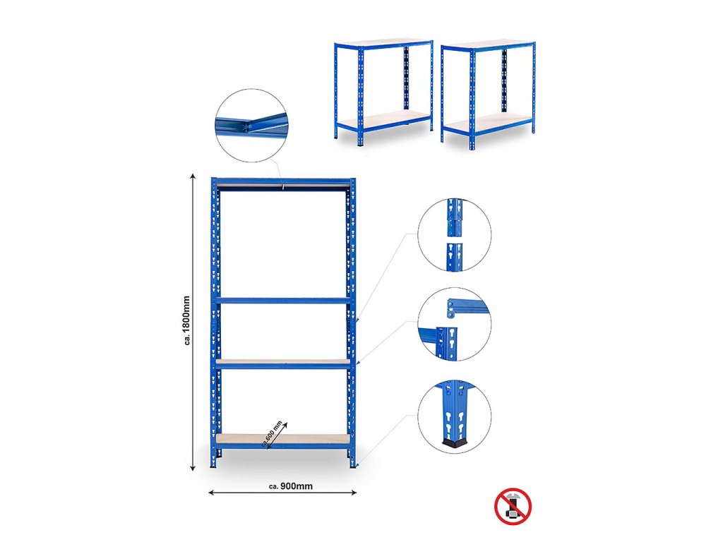 SUPER HIT - Policový regál Trestles RNDU-KUI 1800x900x600, nosnost 700 kg, 4 police, modrý